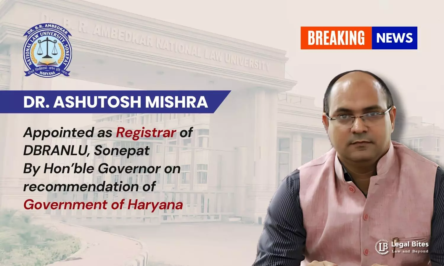 Breaking News: Dr. Ashutosh Mishra Appointed as Registrar of DBRANLU, Sonepat by the Hon’ble Governor on recommendation of Government of Haryana