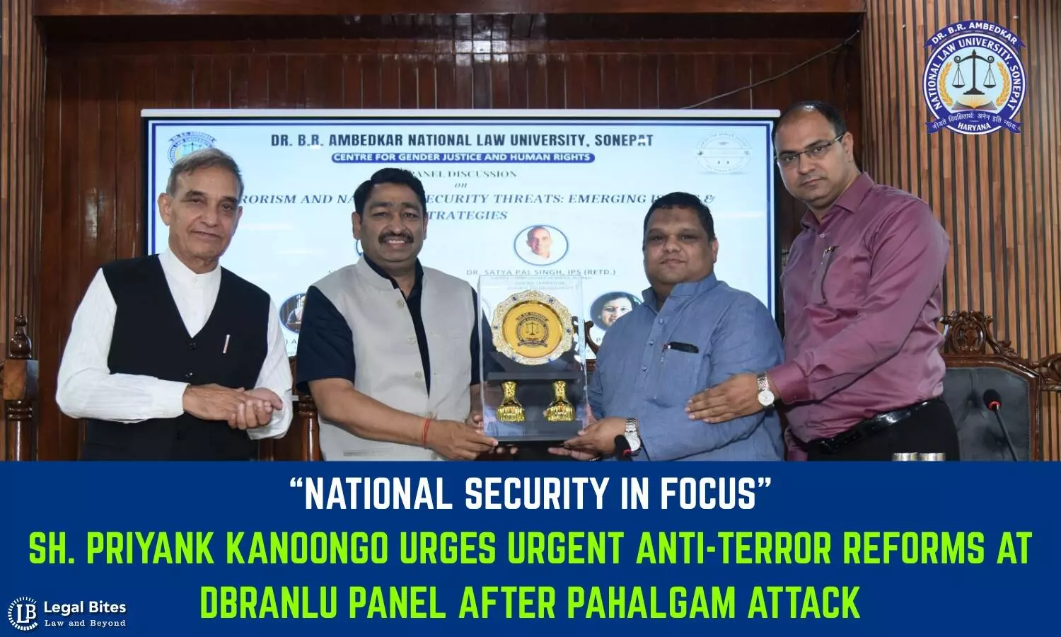 Sonipat, May 9, 2025 | Legal Bites News Desk — In a powerful call to action following the recent Pahalgam terror attack, Shri Priyank Kanoongo, Hon’ble Member of the National Human Rights Commission of India (NHRC), emphasized the urgent need for a proactive and rights-based national security strategy during a high-level panel discussion at Dr. B.R. Ambedkar National Law University (DBRANLU), Sonipat.