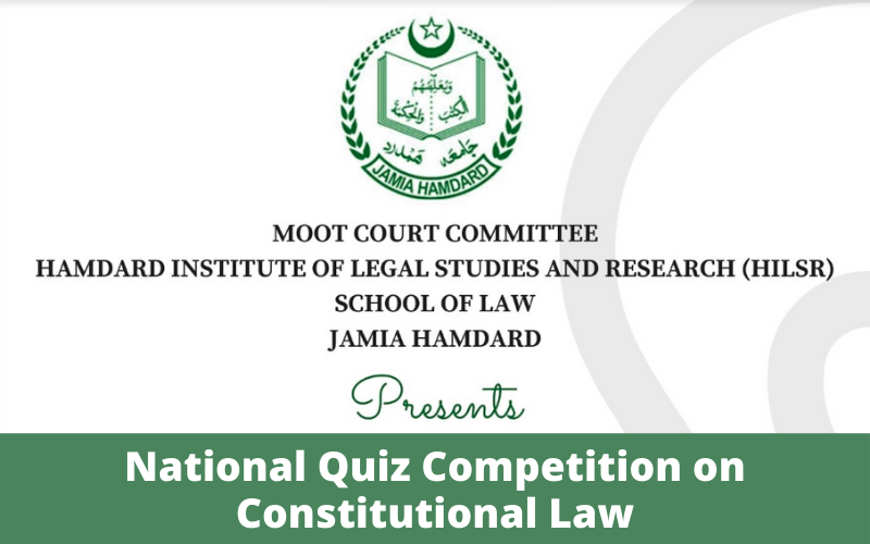 National Quiz Competition on Constitutional Law is being organised by the Moot Court Committee of Hamdard Institute of Legal Studies and Research on 19th November 2021.