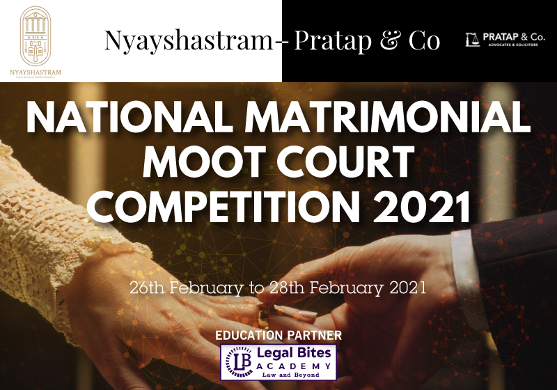 Nyayshastram in association with Pratap & Co., New Delhi is conducting “Nyayshastram – Pratap & Co National Matrimonial Moot Court Competition, 2021” scheduled to be held from 26th February to 28th February 2021.