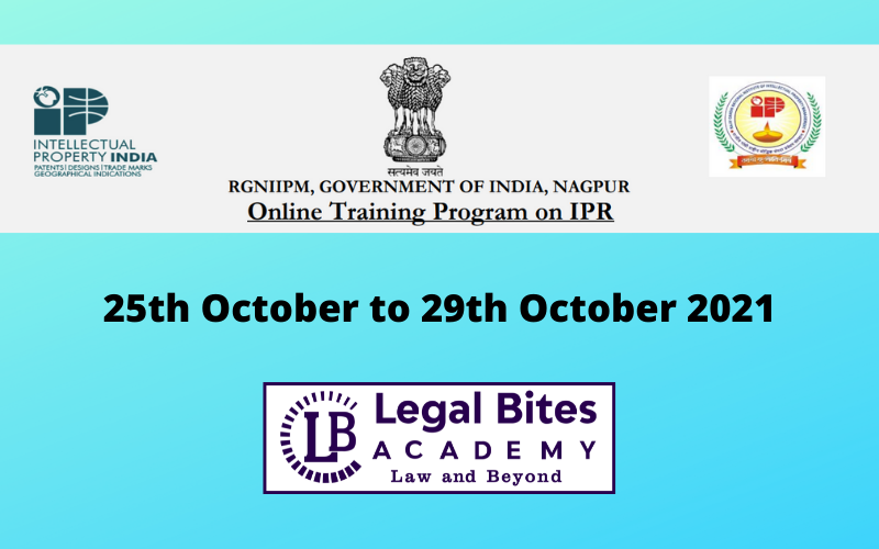 Online Training Program on IPR By RGNIIPM, Government Of India, Nagpur from 25th October to 29th October 2021. RGNIIPM, Government of India is a Central Government Institute under the Ministry of Commerce & Industry which is engaged in conducting training programmes, workshops relating to Intellectual Property Rights (IPR’s) i.e. Patents, Designs, Trademarks, GI, Copyrights etc. Recently, RGNIIPM has received many requests for the conduction of online webinars. Hence it is decided...