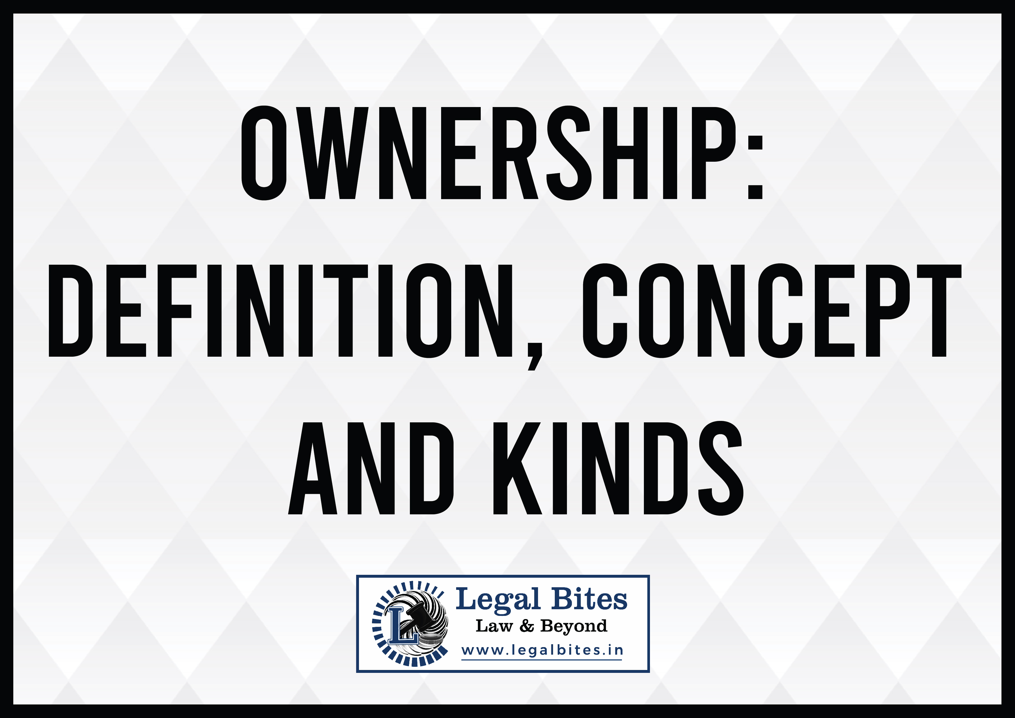 Ownership: Definition, Concept and Kinds | Overview Meaning & Definition Essentials of Ownership Subject Matter of Ownership Modes of Acquisition Kinds of Ownership Meaning & Definition Ownership refers to the relation that a person has with an object that he owns. It is an aggregate of all the rights that he has with regards to the said object. These rights are in rem, that is, they can be enforced against the whole world and not just any specific person. The concept...
