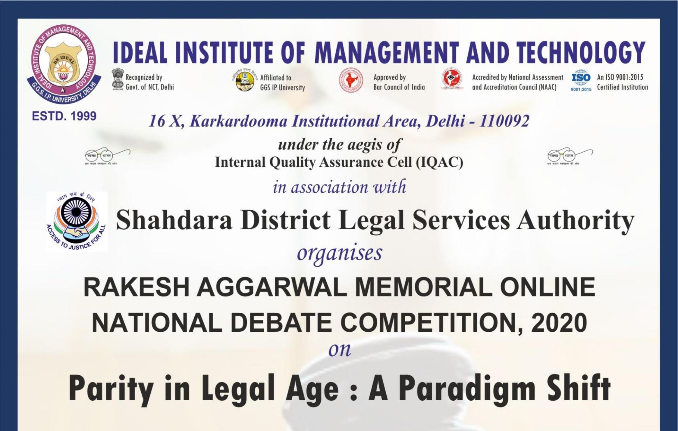 Ideal Institute of Management and Technology & School of Law is organising Rakesh Aggarwal Memorial National Debate Competition 2020 on “Parity in Legal Age: A Paradigm Shift” on 22nd September 2020.