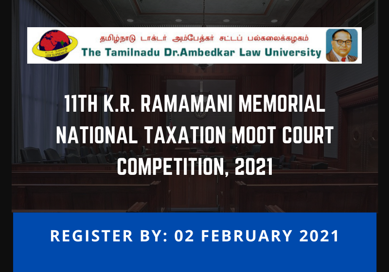School of Excellence in Law in association with SAPR advocates is organizing the 11th Edition of K.R. Ramamani Memorial National Taxation Moot Court Competition 2021, virtually in March.