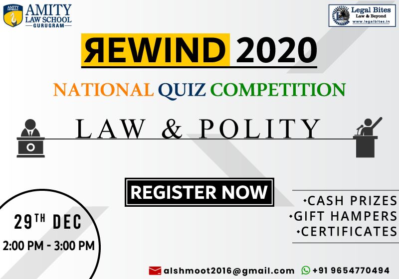 Amity Law School is organising its Rewind 2020: National Quiz Competition on Law & Polity in collaboration with Legal Bites.