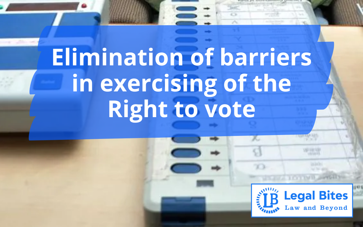 The article ‘Elimination of barriers in exercising of the Right to Vote’ by Shubhangi Singh is an extensive analysis of the hurdles faced by citizens in using their right to vote.