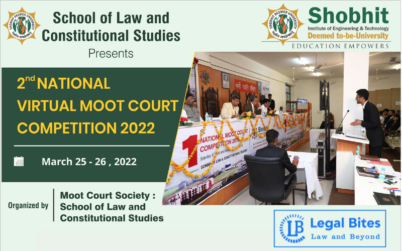 SLCS Second National Virtual Moot Court Competition will be organized by, Shobhit University. The competition is scheduled to take place from 25th March – 26th March 2022. Legal Bites Academy is the proud Education Partner of the Event.