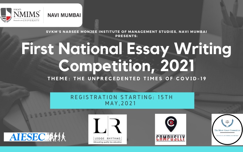 SVKM’s NMIMS, School of Law, Navi Mumbai brings to you our First National Essay Writing Competition, 2021. The objective of this event is to develop a platform of excellence through diverse opinions of brilliant minds sitting at home and willing to spread their word and bring the discussion of important topics pertaining to COVID-19 to the forefront.