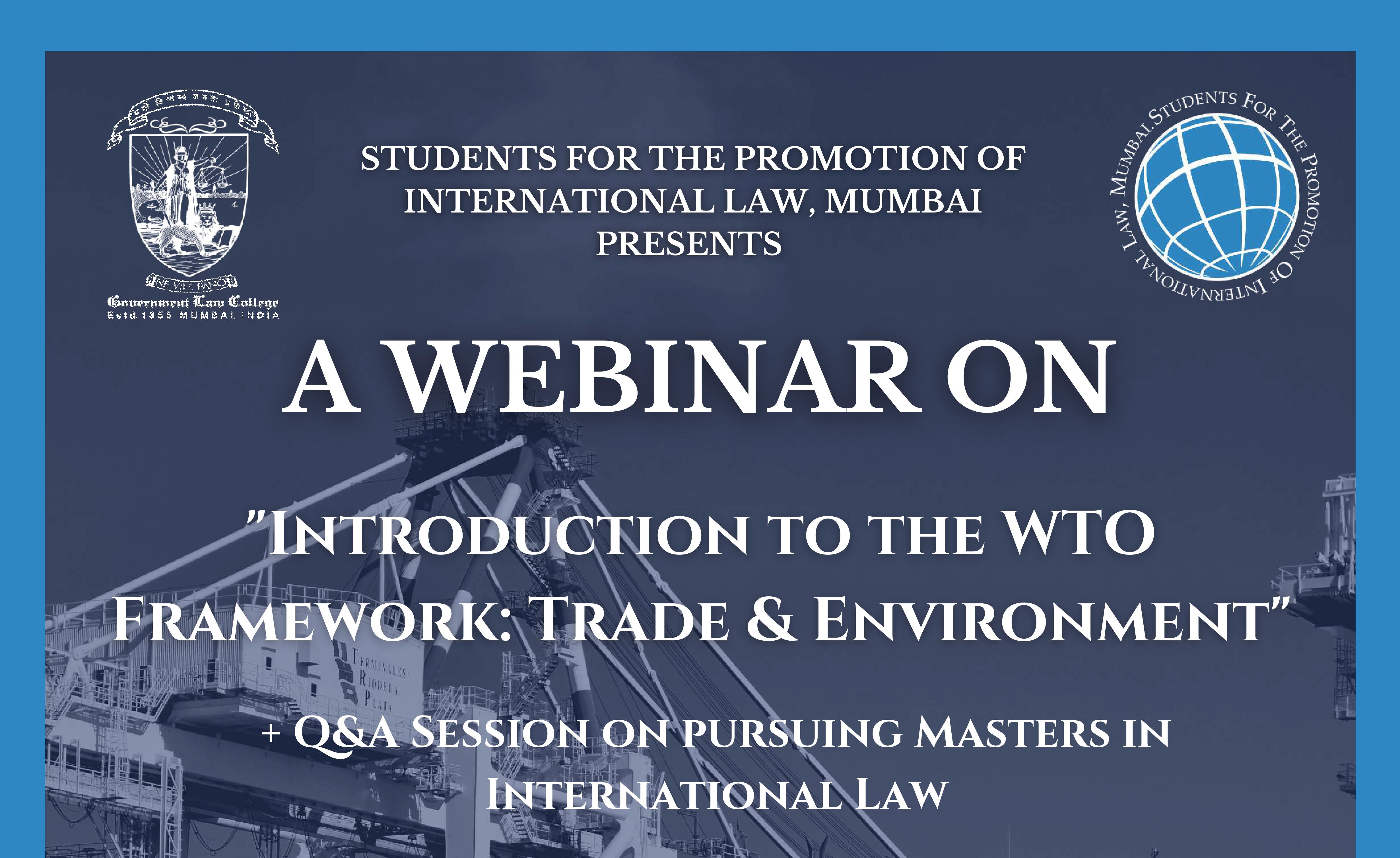 Students for the Promotion of International Law (SPIL), Government Law College, Mumbai is pleased to announce a Webinar with Ms. Akshata Limaye on “Introduction to the WTO Framework: Trade & Environment“.