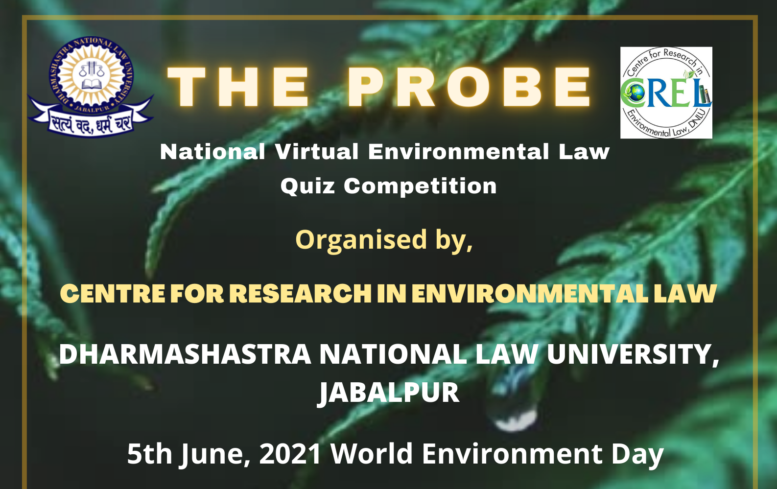 Centre for Research in Environmental Law (CREL), DNLU is organising a quiz competition “The Probe” National Virtual Environmental Law Quiz Competition, 2021, the Centre is organizing “The Probe” in association with Jigyasa, the Quiz Club of DNLU. The competition is all set to take the stage on 5th June 2021, which is marked as World Environment Day.