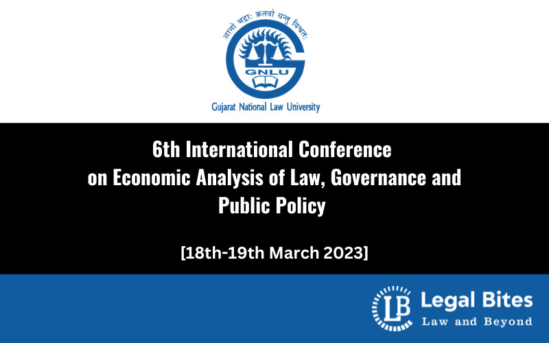 Gujarat National Law University, through its Centre for Law and Economics, which is committed to promoting the interdisciplinary study of law and economics in India, is organizing the 6th International Conference on Economic Analysis of Law, Governance and Public Policy on 18th and 19th March 2023.
