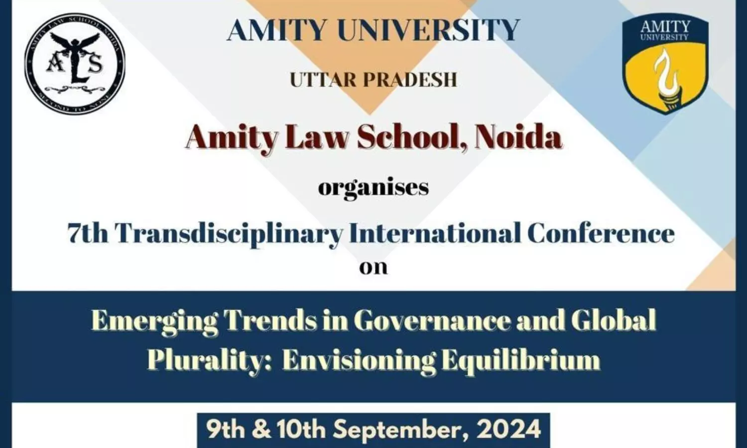 Amity Law School Noida is organizing the 7th Transdisciplinary International Conference on Emerging Trends in Governance and Global Plurality: Envisioning Equilibrium from September 09 to 10, 2024