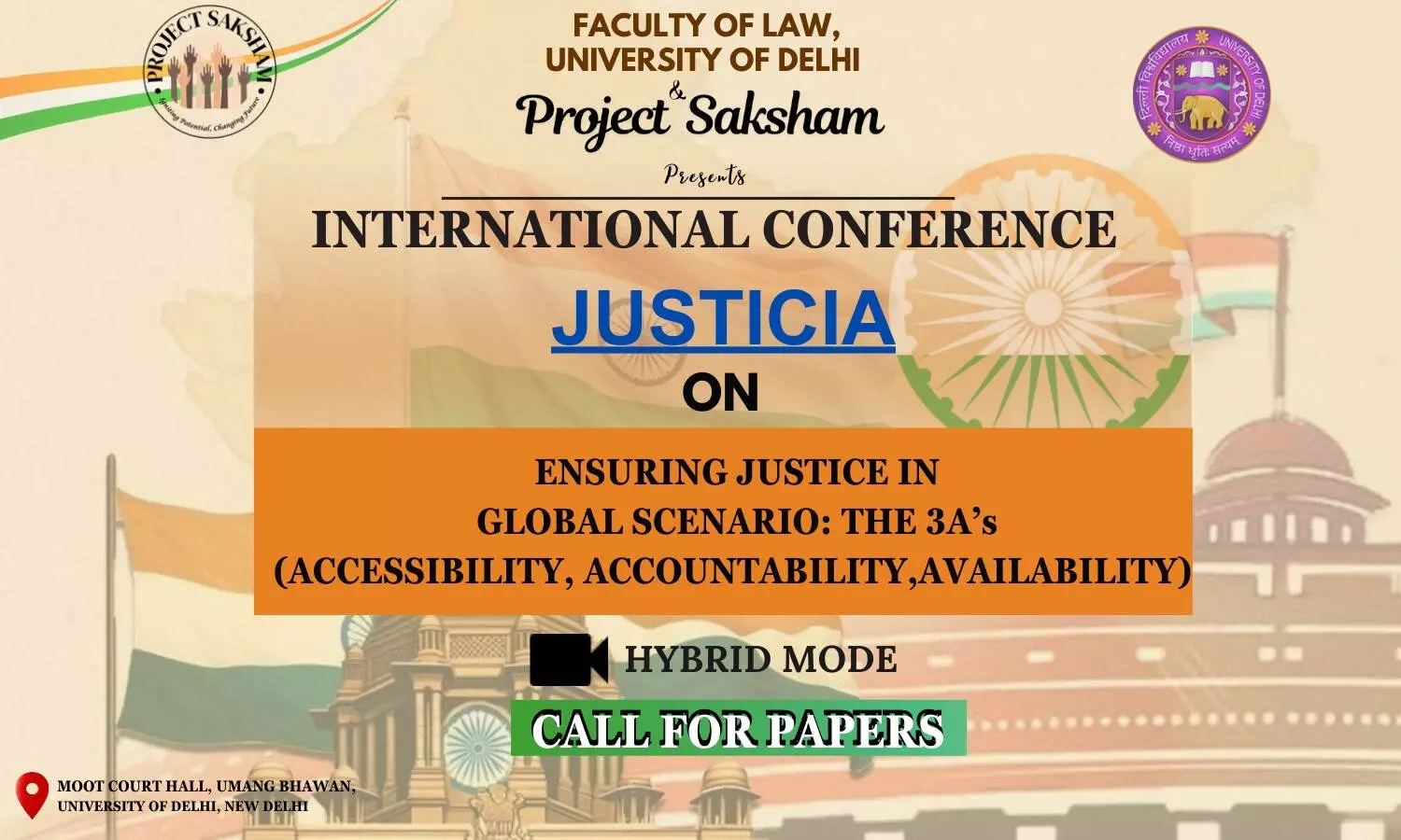 International Conference on Ensuring Justice in Global Scenario | Faculty of Law, University of Delhi & Project Saksham 3.O