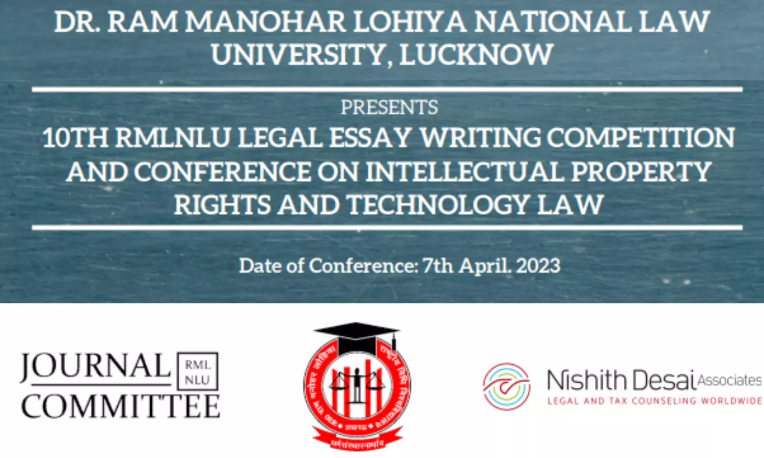 The Journal Committee (“Committee”) at Dr. Ram Manohar Lohiya National Law University, Lucknow (“RMLNLU”), in collaboration with Nishith Desai Associates, is organising the 10th edition of the RMLNLU International Legal Essay Competition and Conference on Intellectual Property Rights and Technology Law (“RILEC”). The Conference and Workshop is to be conducted on 7th April, 2023 from 12 PM and 3 PM respectively. There will be a break of an hour from 2 PM to 3 PM. All registered attendees shall be provided with certificates of attendance.