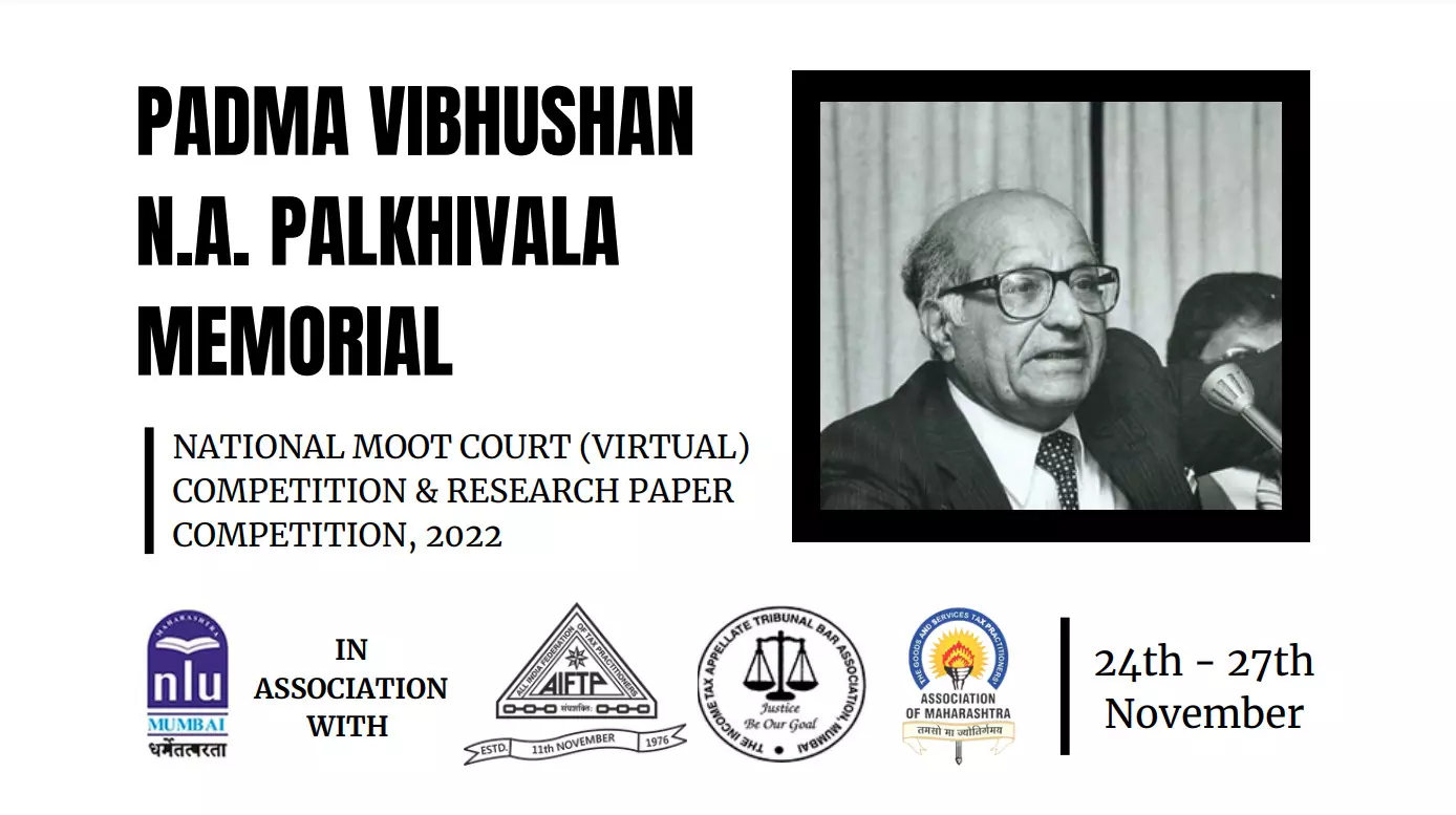 Maharashtra National Law University Mumbai in association with All India Federation of Tax Practitioners (Western Zone), Income-tax Appellate Tribunal Bar Association – Mumbai & Goods and Services Tax Practitioners' Association – Maharashtra, brings to you the 12th edition of the Padma Vibhushan N.A. Palkhivala Memorial National Moot Court (Virtual) Competition, 2022. The moot revolves around taxation law and seeks to inculcate interest about Tax law practice in the minds of students.