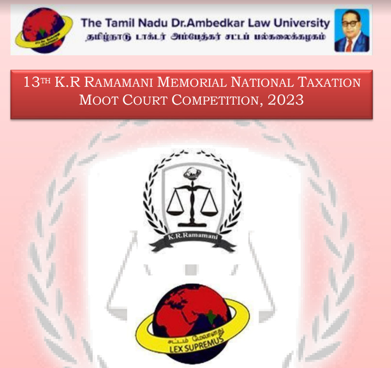 13th K R Ramamani Memorial National Taxation Moot Court Competition, 2023 & 13th V S Sundaram Research Paper Competition, 2023 are being organised by School of Excellence in Law, TNDALU.