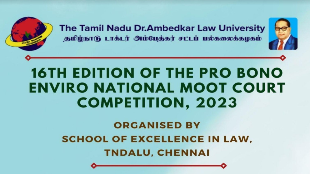 16th Pro Bono Enviro National Moot Court Competition, 2023 | Register by Jan 1 | Prizes Worth 1 Lakh | TNDALU