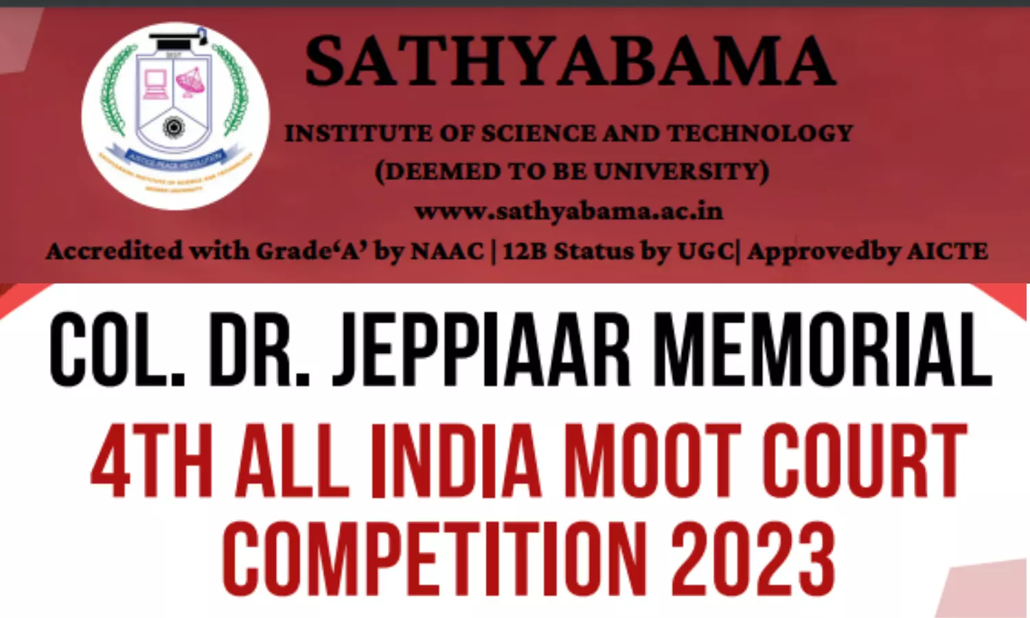School of Law, Sathyabama Institute of Science and Technology is organizing its Col. Dr. Jeppiaar 4th All India Moot Court Competition 2023, from March 29th to April 12th, 2023.