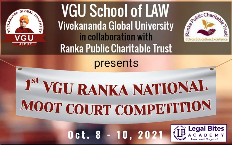 VGU School of Law is organising the 1st VGU Ranka National Moot Court Competition 2021 in association with Ranka Charitable Trust in its dedicated efforts towards the growth and development of the legal fraternity. The competition is scheduled to be held in offline mode from 8th – 10th October 2021. Legal Bites Academy is the proud Education Partner of the Event.