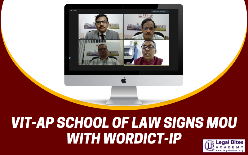 Signing ceremony of Memorandum of Understanding (MoU) between the VIT-AP School of Law (VSL), VIT-AP University and Wordict-IP was held virtually by VIT-AP University on 22nd July 2021.