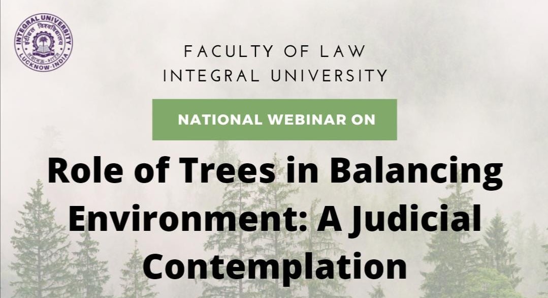 The Environmental Law Society, Faculty of Law, Integral University is organizing a National Webinar on Role of Trees in Balancing Environment: A Judicial Contemplation on 25th February 2021 from 1:00 pm to 4:00 pm. The inclination towards the safety of our environment has been and will be one of our greatest requirements and to put our efforts into actual practice we need to have knowledge about the different aspects and granules of the environment.