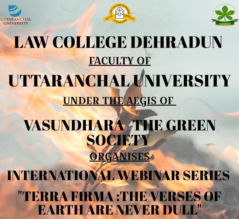 International Webinar Series on Terra Firma: The Verses of Earth are Never Dull is being conducted by Vasundhara – The Green Society, Law College Dehradun, Uttaranchal University.